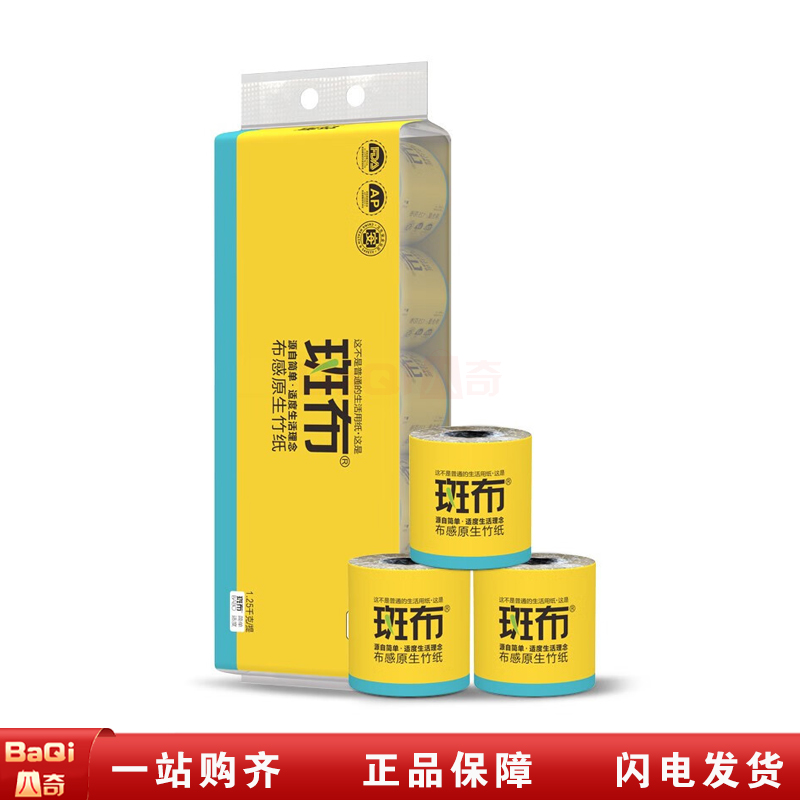 商品名称:斑布 BCJ125A10 本色卷纸10卷/提原生竹浆卫生纸1.25kg家用厕纸卷筒纸手纸(6提/件)