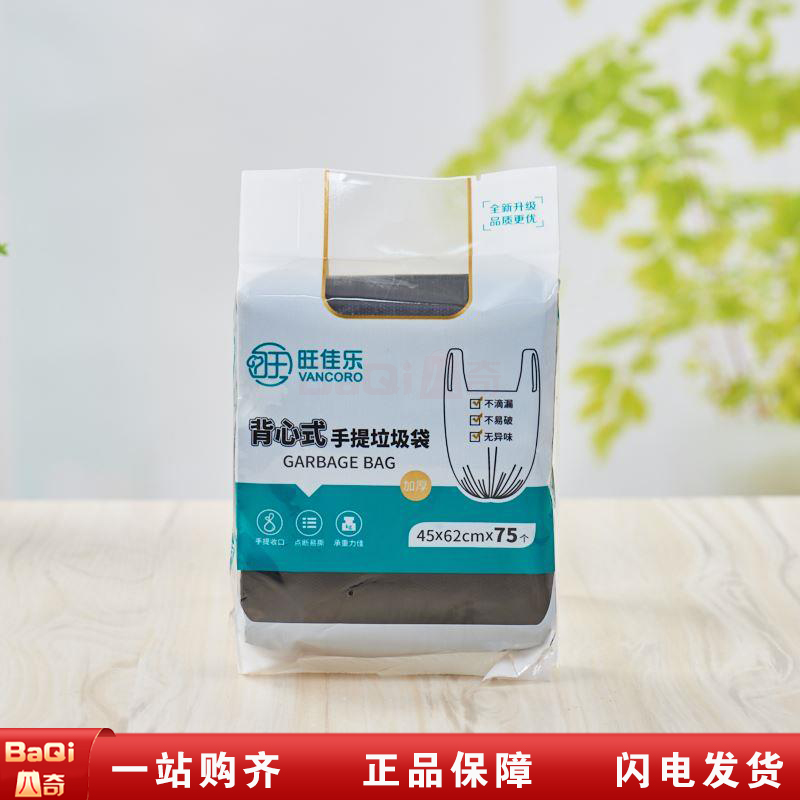 商品名称:旺佳乐2812 45cm*62cm三卷装特厚背心手提式垃圾袋75只/包