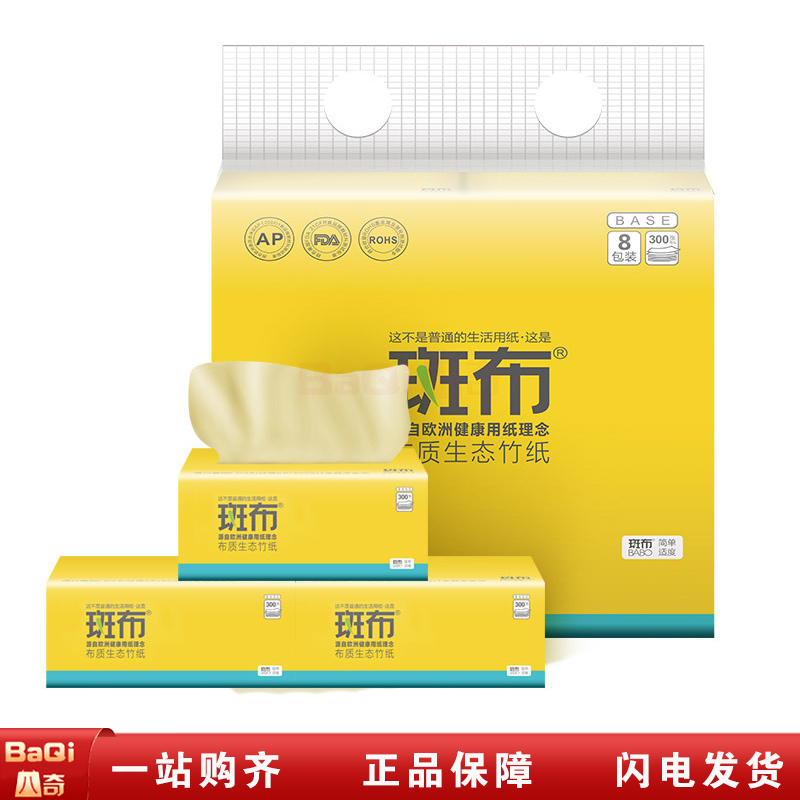 商品名称:斑布 BCR100E8 抽纸3层竹浆本色纸无染竹纤维纸巾卫生纸家用100抽 8包/提 (10提/件)