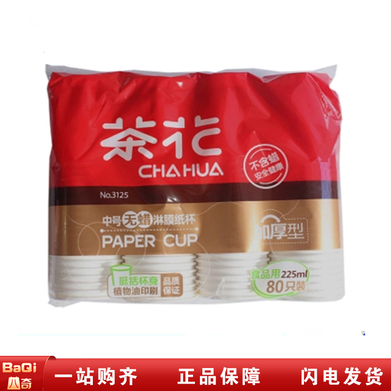茶花 3125 纸杯中号无蜡淋膜纸杯225ml 80只/袋