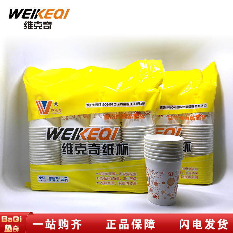 商品名称:维克奇 210克 大号纸杯(加厚型) 240ML 一次性纸杯 一次性水杯100个/包 20包/件