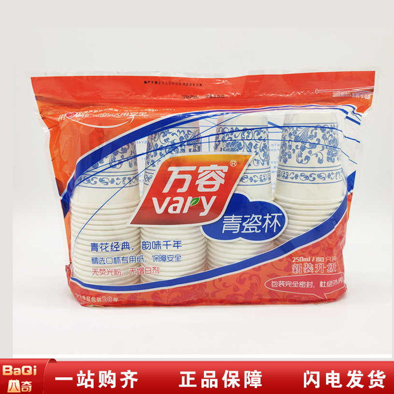 商品名称:万容 BY4880 青花瓷纸杯大号加厚家用一次性纸杯250ml (80个/包)