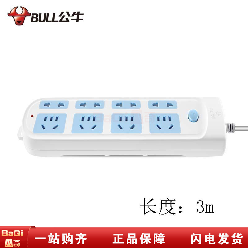 商品名称:公牛 GN-610 3m电源插座 新国标3m有线3米8孔插板接线板排插拖线板带开关