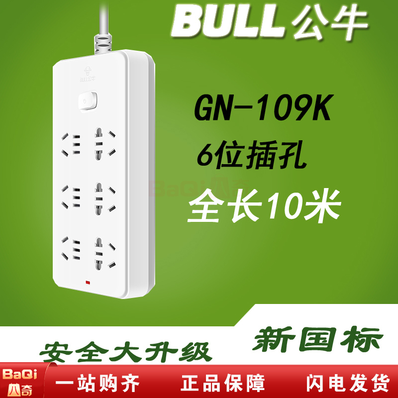 公牛 GN-109K 10m电源插座 新国标六孔插座插排电脑插座接线插板 10米拖线板