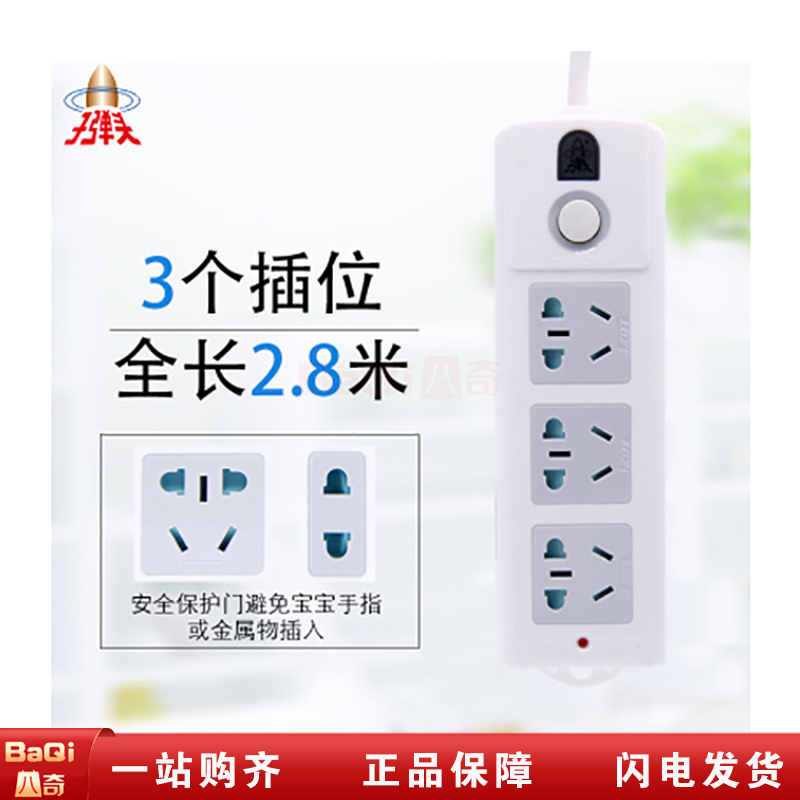 商品名称:子弹头 TS-103 2.8m新国标防触电拖线板2.8米插板 电源插座 电源带开关插座插线板插排插