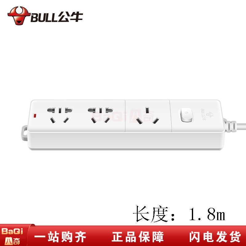 商品名称:公牛GN-406D 1.8m 新国标有线1.8米3孔插座16A大功率插排4000W接线板 空调热水器用排插拖线板插板