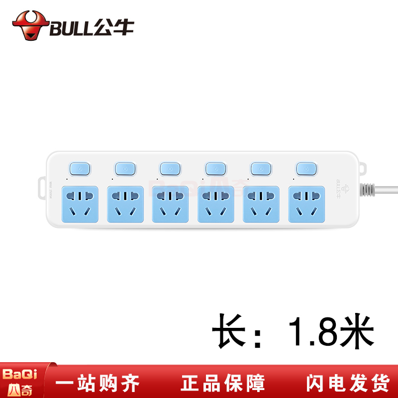 商品名称:公牛 GN-317 1.8m电源插座 插座1.8米接线板 插排 拖线板插板新国标独立开关插座