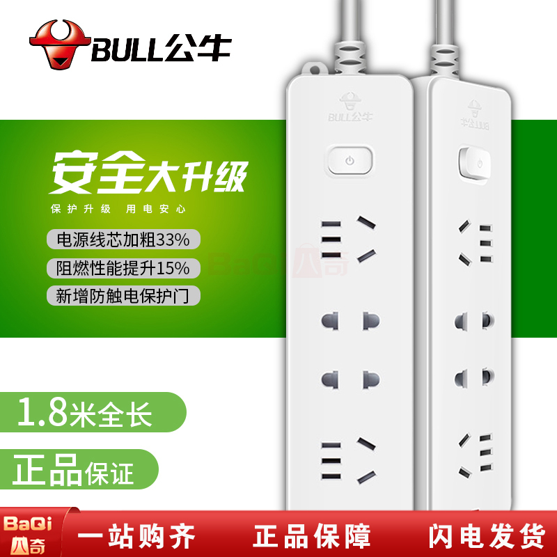 商品名称:公牛 GN-211 1.8m家用电源接线插板新国标插座插排1.8米4插位拖线板