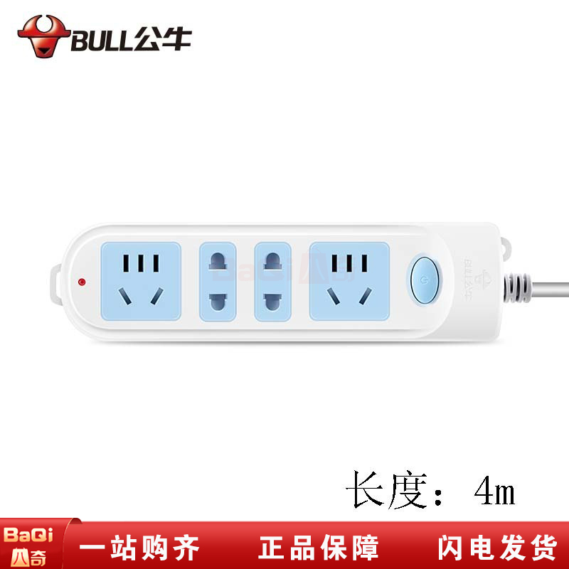 商品名称:公牛 GN-607 4m新国标有线4米4孔位插座排插电源接线插板拖线板家用接线板