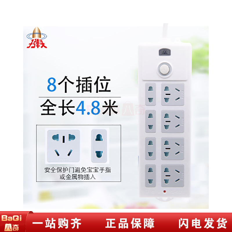 商品名称:子弹头 TS-023 4.8m电源带开关插座插线板插排插新国标防触电拖线板4.8米插板