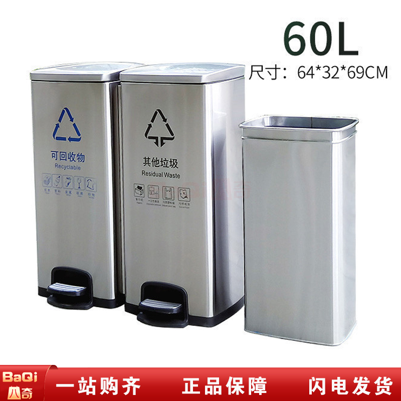 商品名称:八奇 不锈钢脚踏30+30升两分类垃圾桶商用公用静音缓降