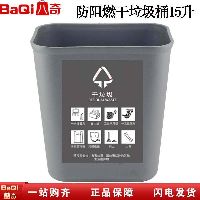 商品名称:八奇 宾馆客房垃圾桶 酒店防阻燃干垃圾桶15升 无盖方形垃圾桶