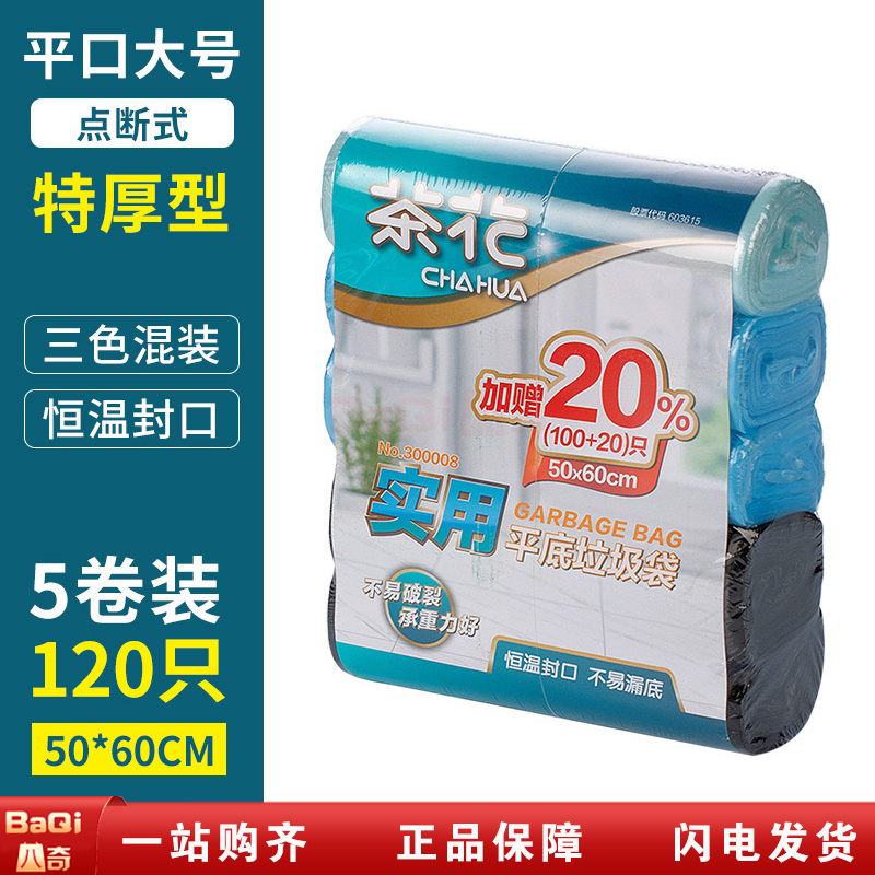 茶花 300008 垃圾袋平底加厚120只50*60cm分类清洁袋塑料袋垃圾桶袋方便收纳袋