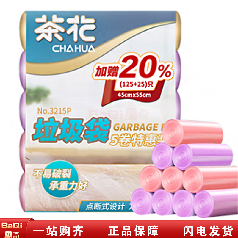 商品名称:茶花 垃圾袋3215P一次性点断式加厚垃圾袋45*55特惠5卷装垃圾袋清洁袋