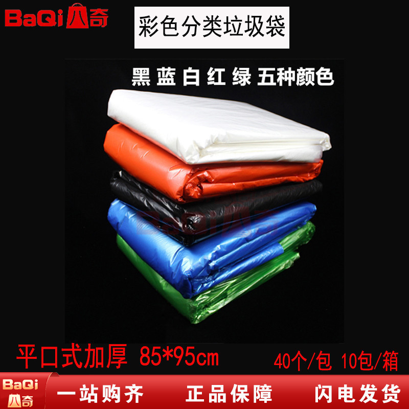 商品名称:八奇 加厚平口式彩色分类垃圾袋酒店物业环卫塑料袋黑白绿蓝红五色环保袋85*95cm 40个/包 10包/箱