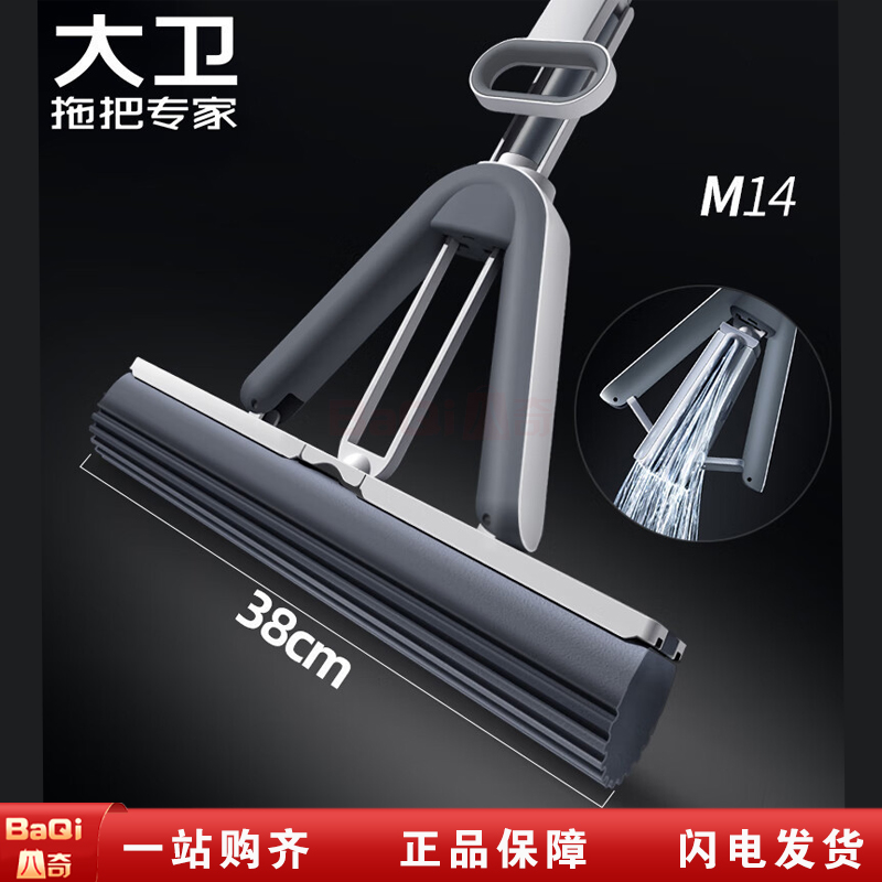 大卫 M14 对折胶棉拖把一拖净免手洗挤水式吸水海绵懒人家用拖布巨无霸二代胶棉头38cm