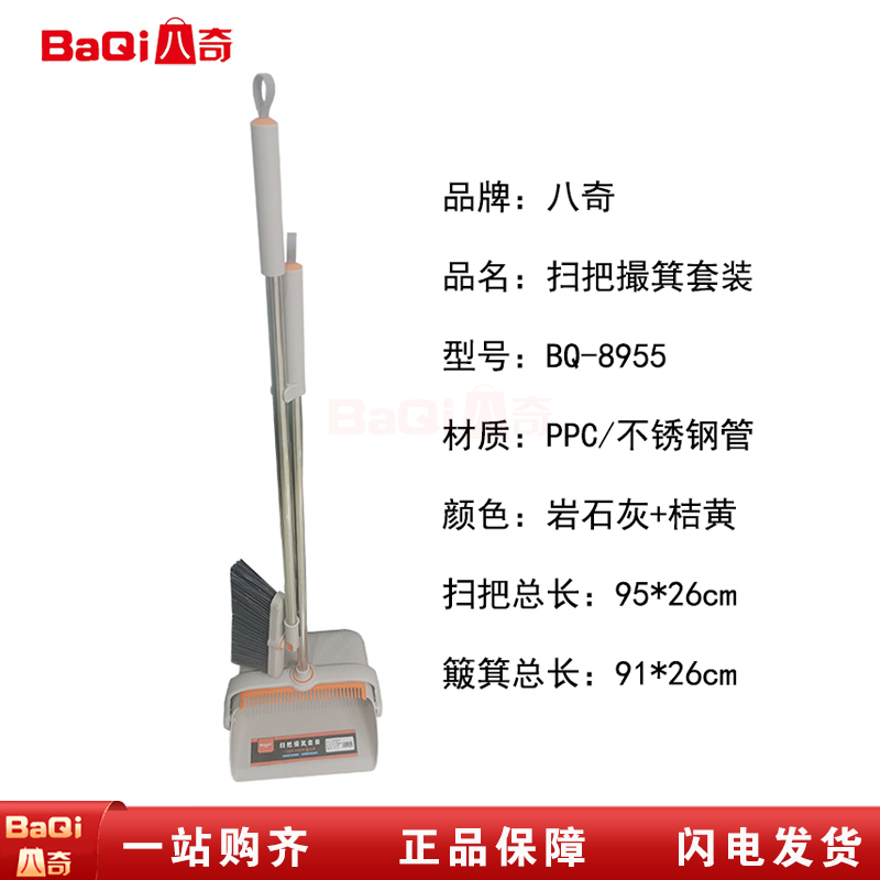 商品名称:八奇 BQ-8955 扫把撮箕组合套装 可旋转折叠挂壁收纳家用商用 岩石灰+桔黄