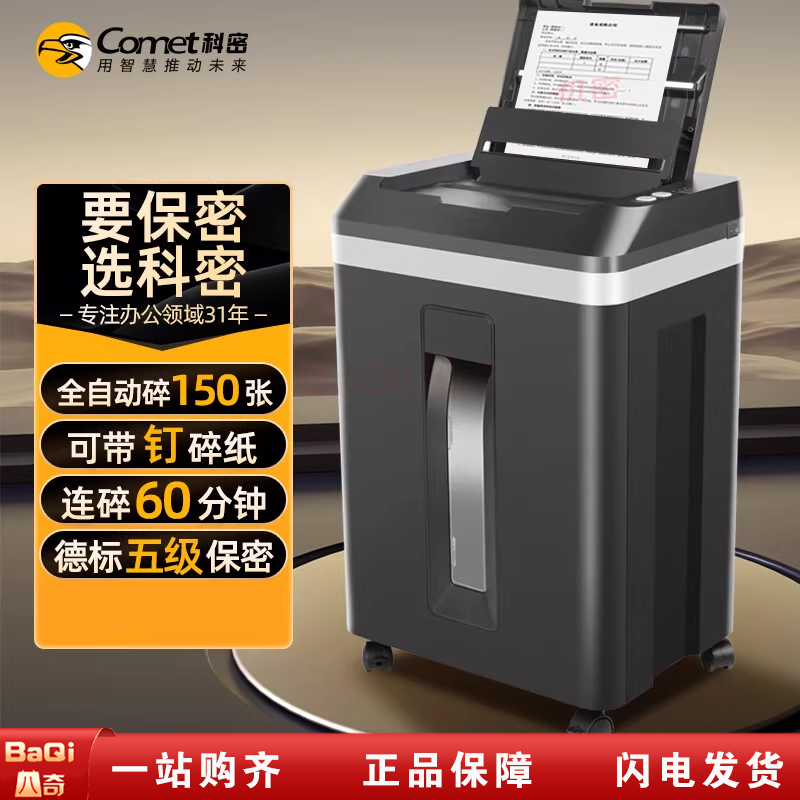 商品名称:科密A8150D全自动碎纸机5级保密办公粉碎机全自动150张60分钟23L