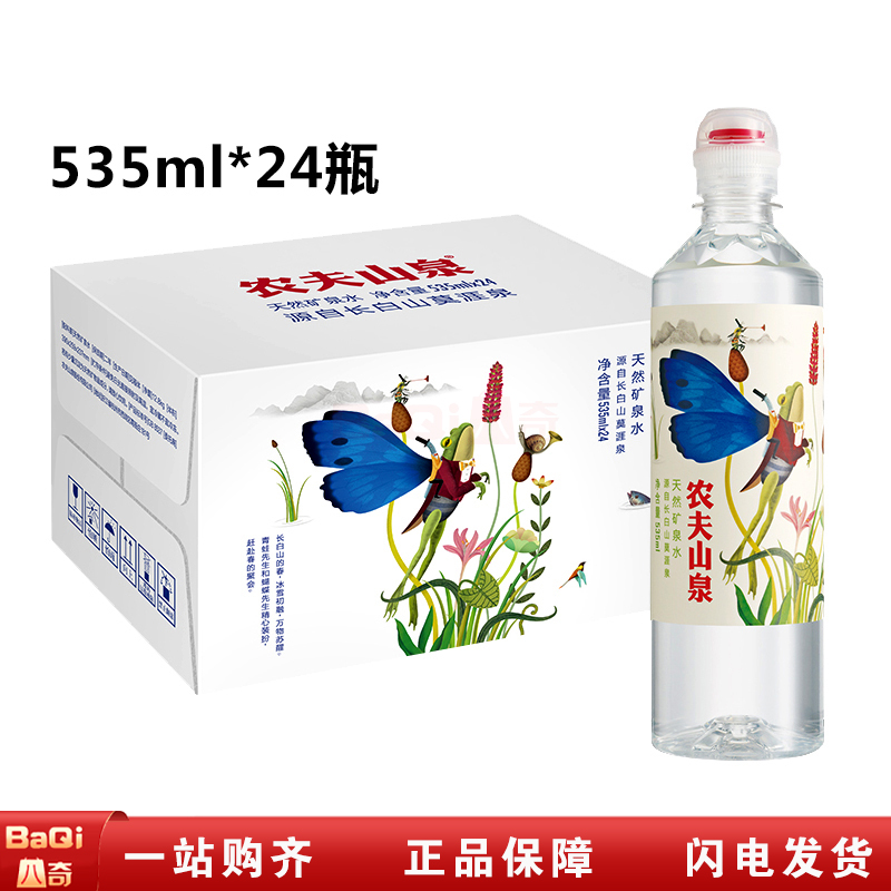 商品名称:农夫山泉/nongfu spring 长白雪 535ml*24瓶 矿泉水/纯净水 红白运动盖弱碱性天然水