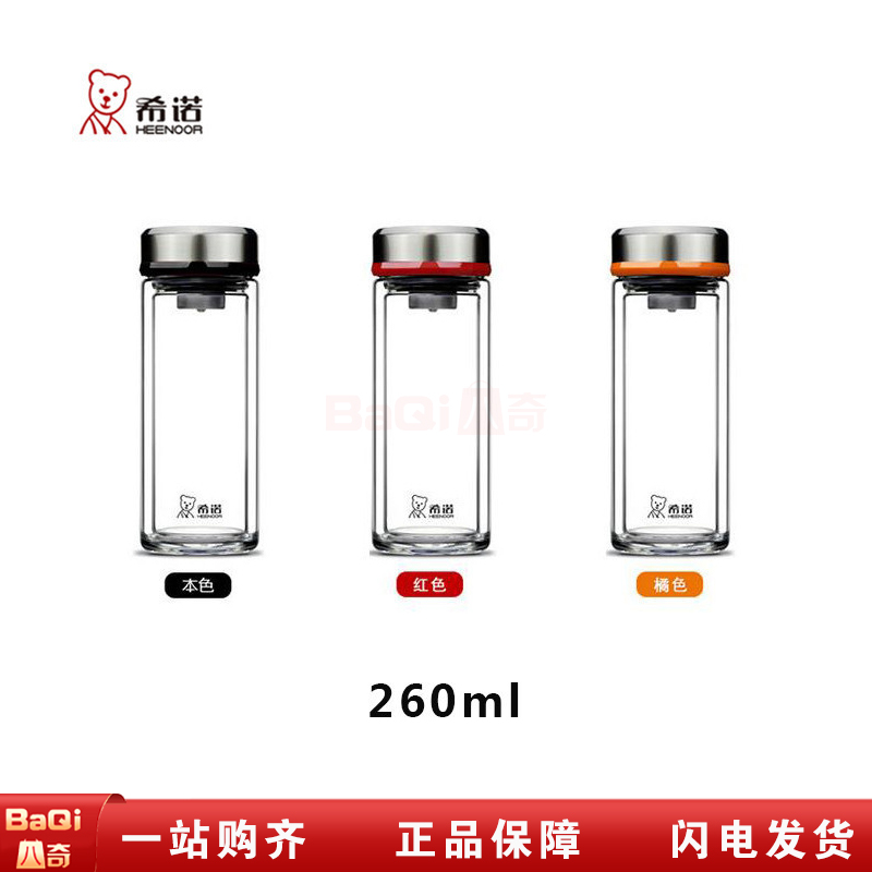 商品名称:希诺 XN-7030 双层玻璃杯不锈钢盖杯创意水晶杯男女士办公泡茶水杯 260ml颜色随机