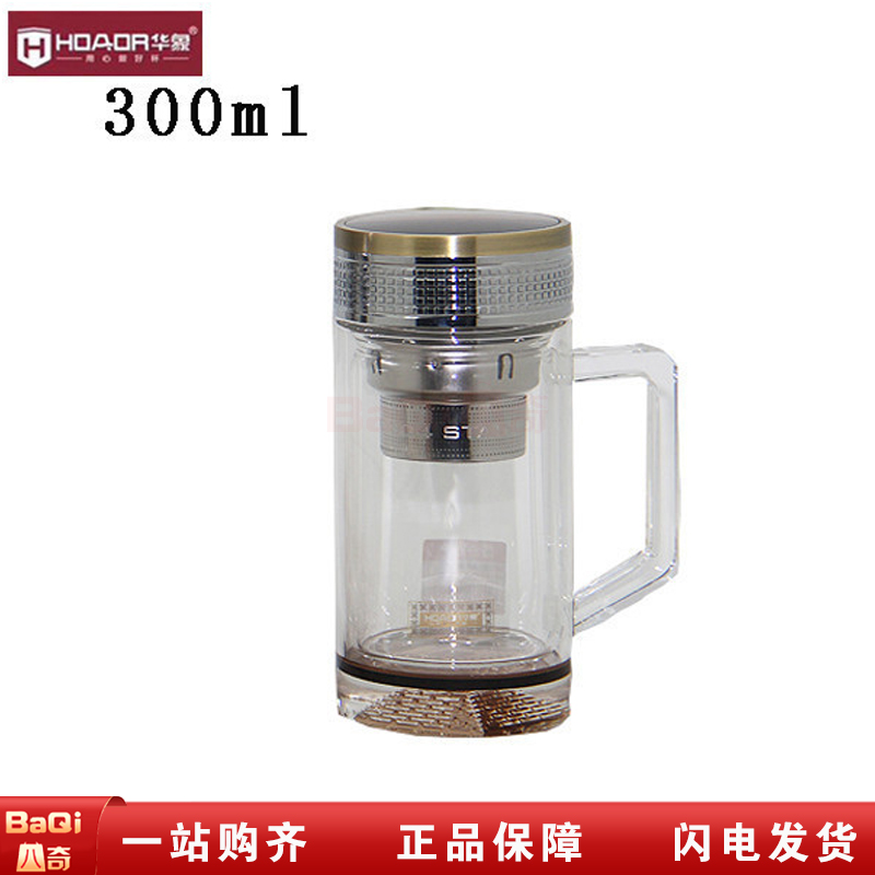 商品名称:华象 HX170-80 双层加厚水晶玻璃办公杯带把手柄过滤茶杯水杯300ml泡茶杯子高16.5*直径8cm