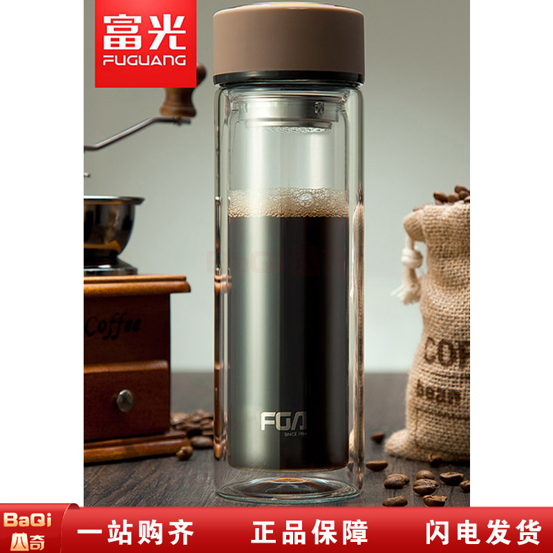 商品名称:富光 WFB1013-400玻璃杯男女家用便携双层透明水杯带盖磨砂耐热大容量泡茶杯子 400ml