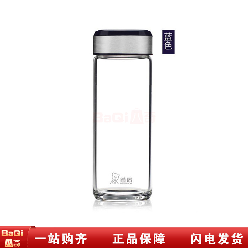 希诺 双层玻璃杯办公茶杯泡茶水杯子带过滤水晶口杯便携XN-6710 285ml 深蓝色