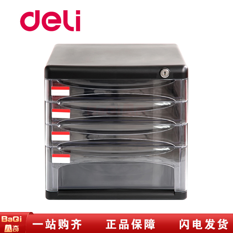得力 9794 桌面文件柜 四层塑料文件抽屉(透明抽屉带锁)