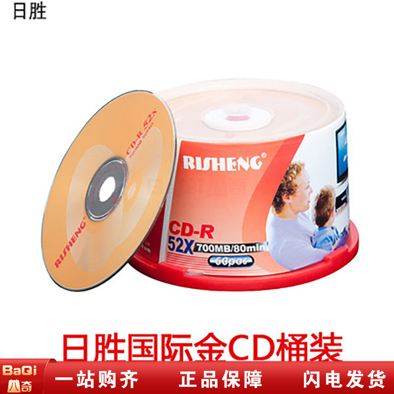 商品名称:日胜 国际金CD刻录盘音乐CD光盘空白刻录光盘CD-R光盘VCD光碟50片装