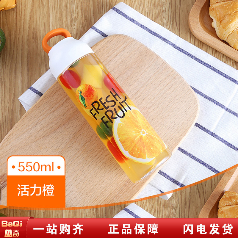 乐扣乐扣 550ml水果塑料水杯 运动水壶便携防漏学生男女士随手杯HLC688 活力橙