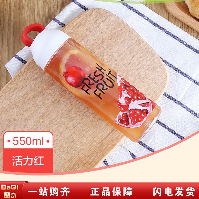乐扣乐扣 550ml水果塑料水杯 运动水壶便携防漏学生男女士随手杯HLC688 活力红