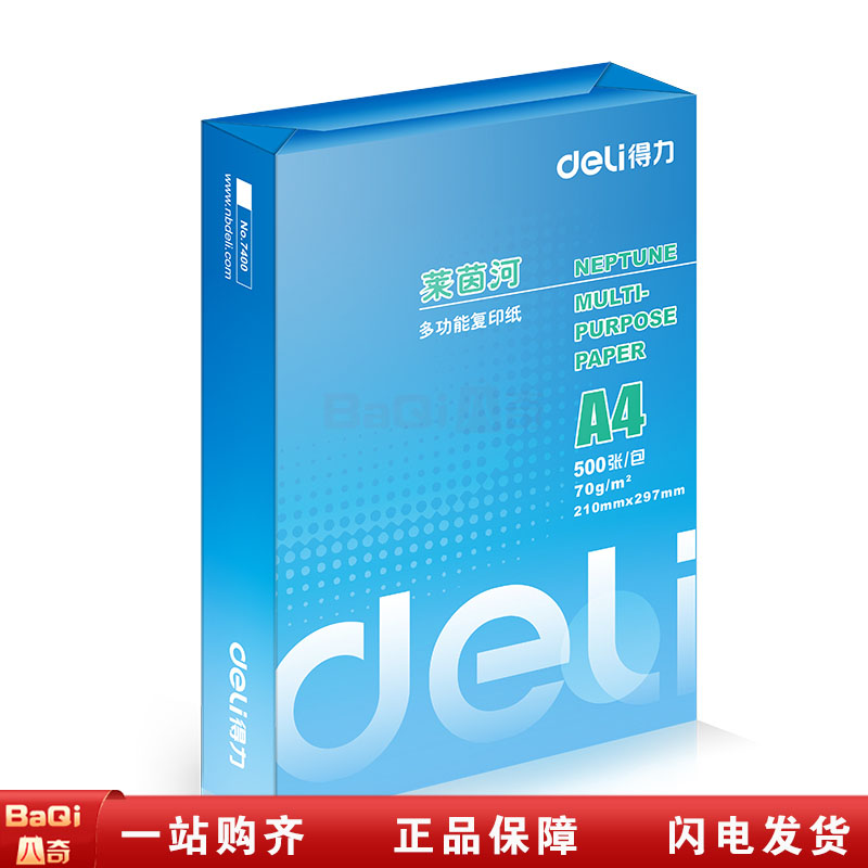 商品名称:得力 7402莱茵河复印纸打印纸A4 70g 500张/包 8包/件