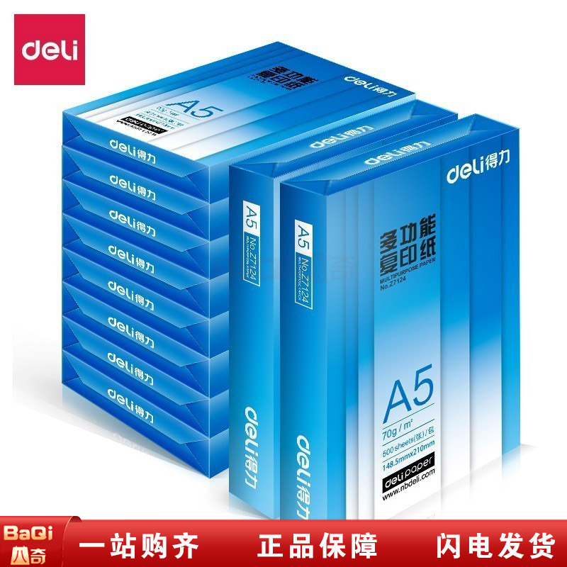 商品名称:得力 Z7123 打印/复印纸 A5 70g 铂锐 白色 500张/包(10包/箱)