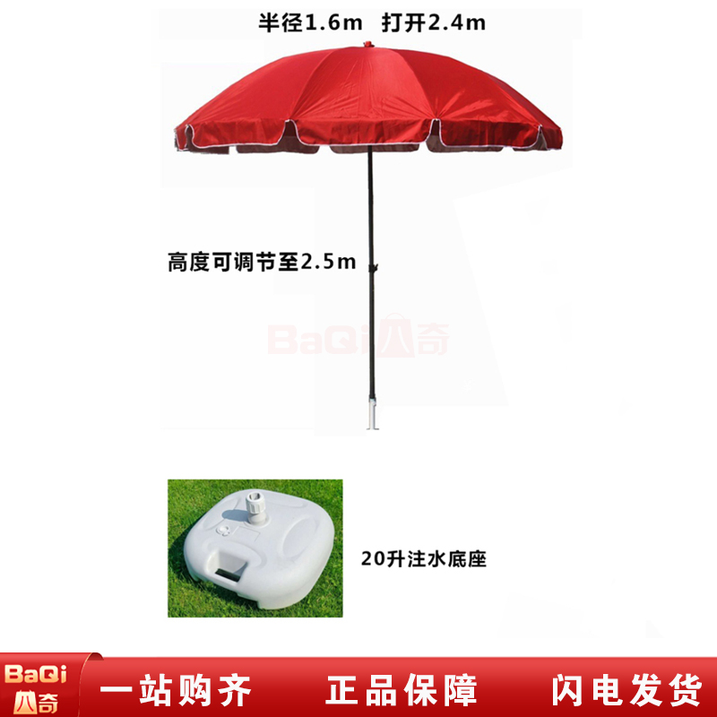 商品名称:八奇 加厚户外伞太阳伞折叠庭院户外遮阳太阳伞大雨伞摆摊伞防雨防晒带底座 红色