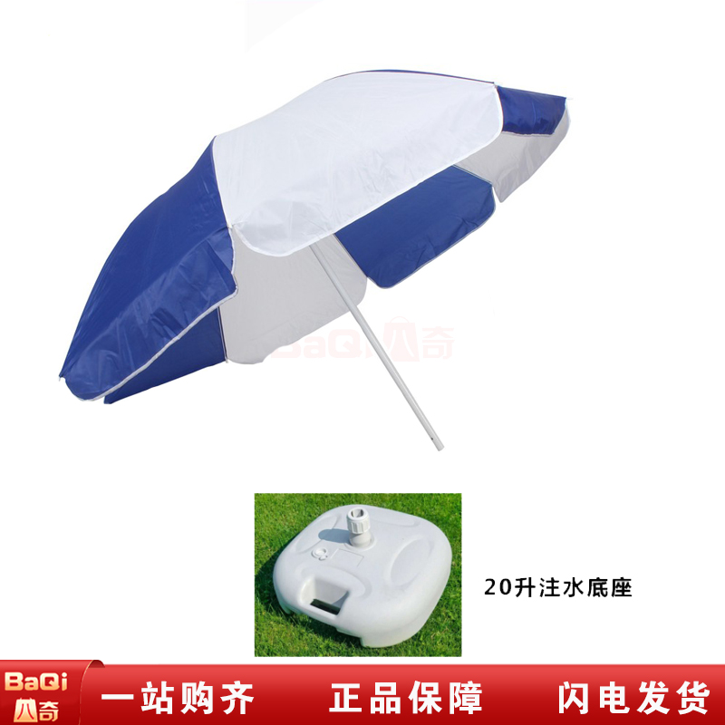 商品名称:八奇 加厚户外伞太阳伞折叠庭院户外遮阳太阳伞大雨伞摆摊伞防雨防晒带底座 蓝白色