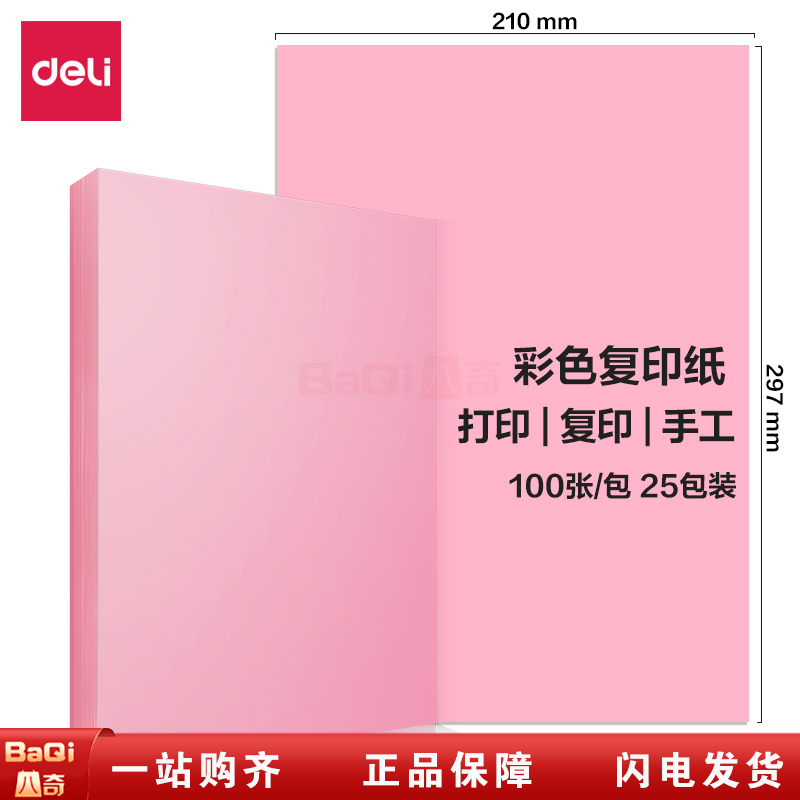 商品名称:得力 7391彩色复印纸A4 80g彩色电脑打印粉红办公纸100张/包
