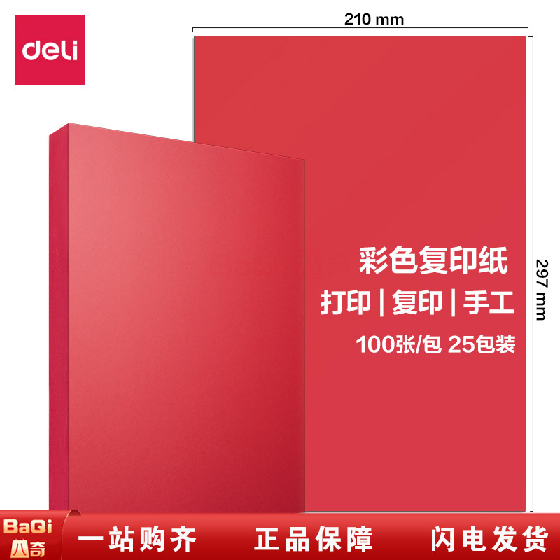 商品名称:得力 7391彩色复印纸A4 80g彩色电脑打印红色办公纸100张/包