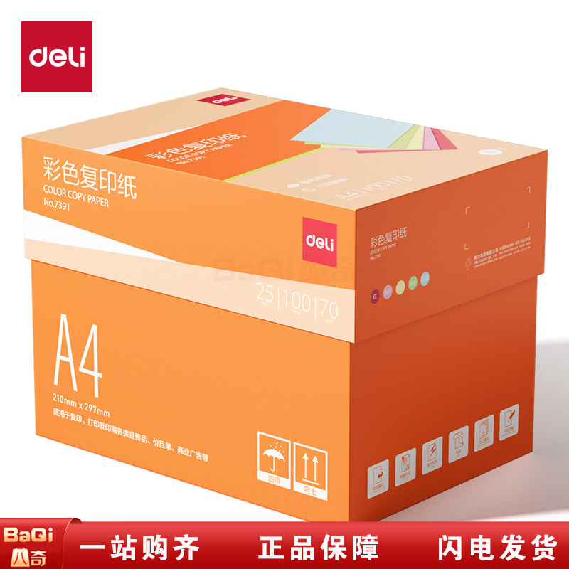 商品名称:得力 7391彩色复印纸A4 80g彩色电脑打印黄色办公纸100张/包