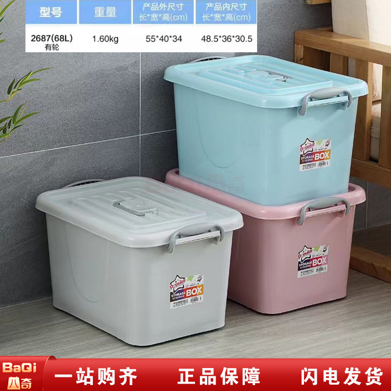 商品名称:恒达 2687(68L)有轮收纳箱衣物玩具整理箱家用置物储物箱55*40*34cm 粉/蓝/灰