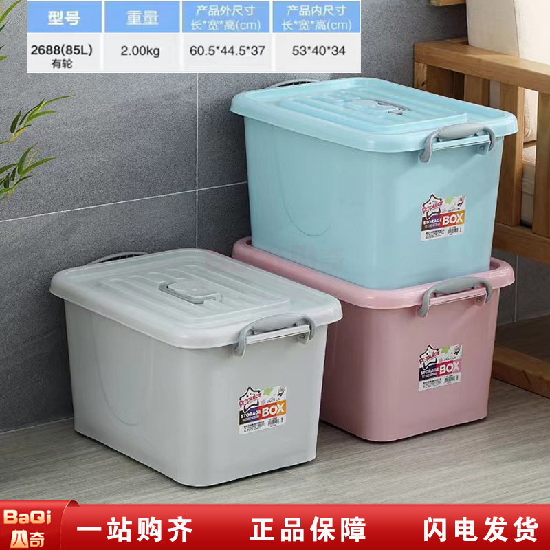 商品名称:恒达 2688(85L)有轮收纳箱衣物玩具整理箱家用置物储物箱60.5*44.5*37cm 粉/蓝