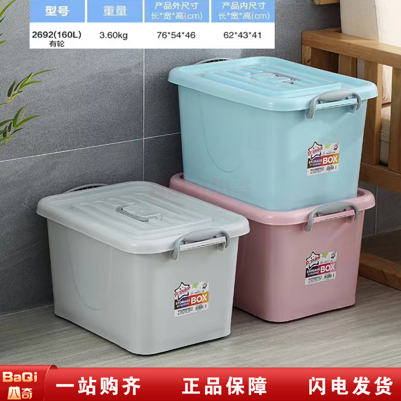 商品名称:恒达 2692(160L)有轮收纳箱衣物玩具整理箱家用置物储物箱76*54*46cm 粉/蓝/灰
