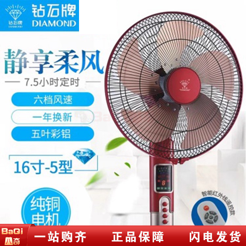 钻石牌FS1-40K-5遥控款落地扇16寸-5型家用遥控宿舍静音定时办公室摇头电风扇