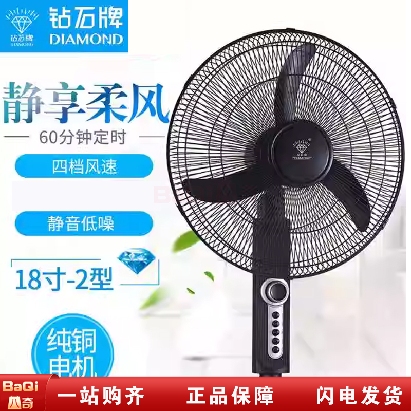 钻石牌FS1-45-2 18寸2型牛角扇办公扇升降立式摇头静音风扇落地扇