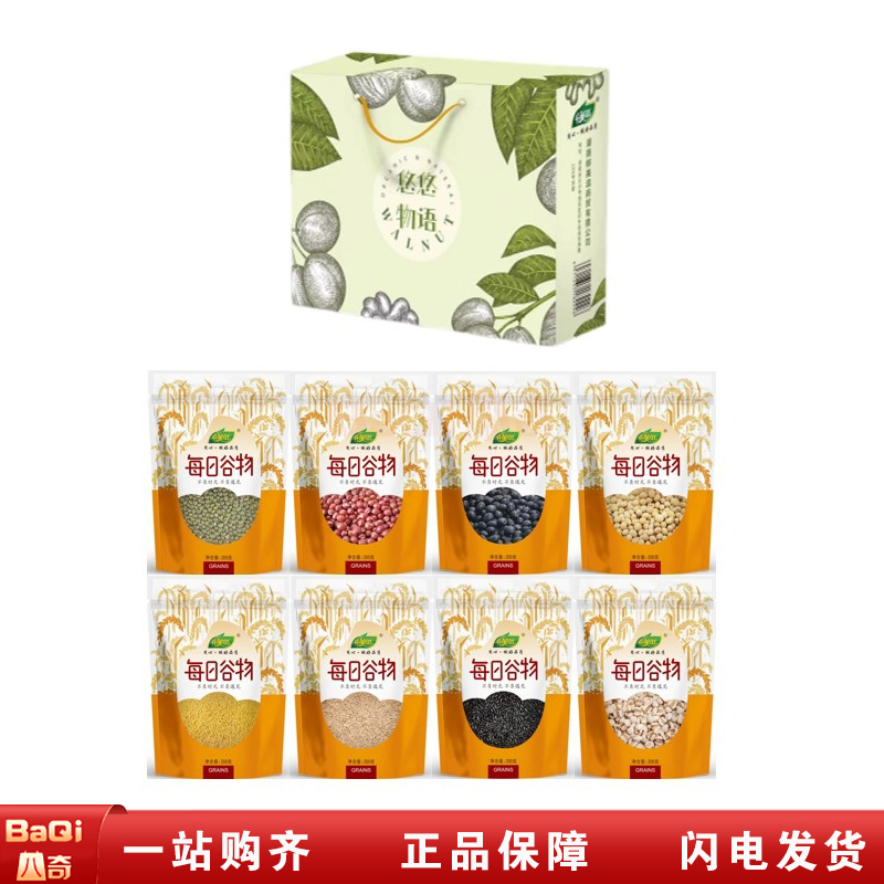 商品名称:升美滋悠悠物语杂粮1600克礼盒尺寸39.5*9.5*28.5(200克小黄米、200克黄豆、200克燕麦米、200克绿豆、200克黑米、200克小黑豆、200克红小豆、200克薏米仁)