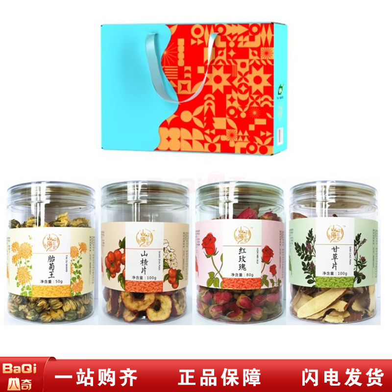 升美滋时味330克养生茶干货礼盒尺寸38*10*26cm(50克胎菊王、100克山楂片、80克红玫瑰、100克甘草片)