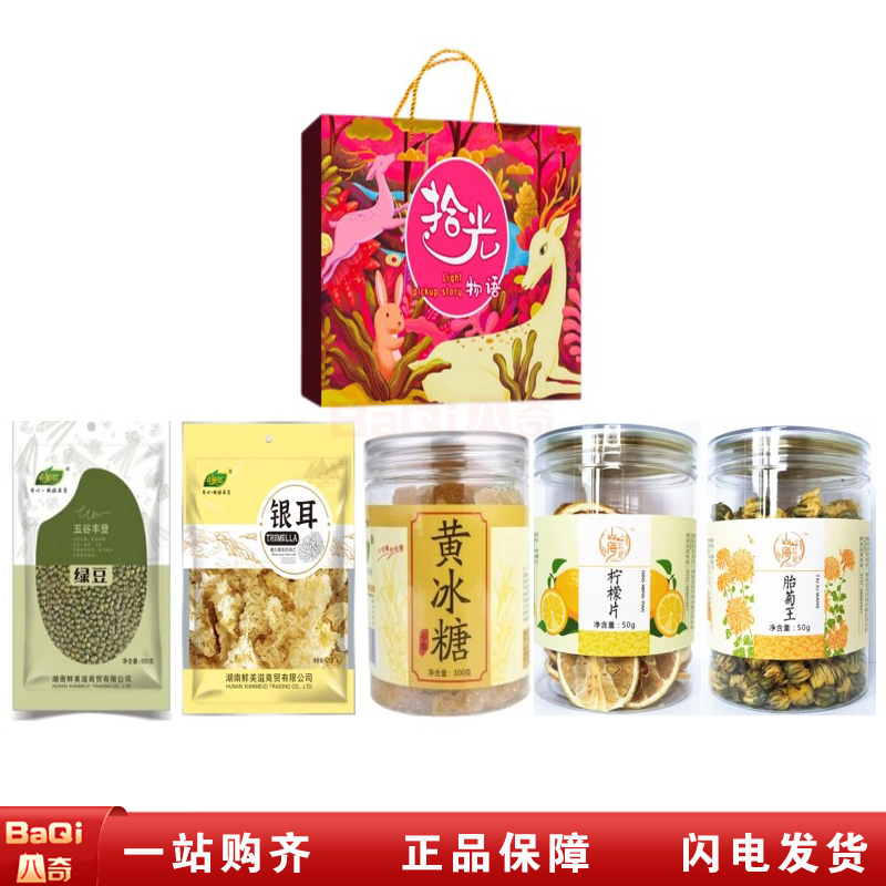 升美滋拾光物语1020克礼盒尺寸37*16*27cm(500克绿豆、120克银耳、300克黄冰糖、50克柠檬片、50克胎菊王)