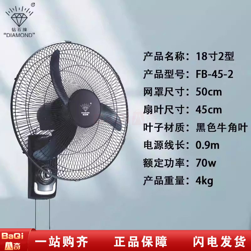 商品名称:钻石牌FB1-45-2 18寸2型壁扇家用静音壁挂式大风力工业摇头挂壁电风扇