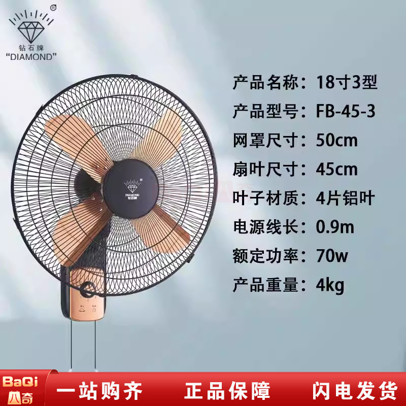 商品名称:钻石牌FB1-45-3 18寸3型壁扇家用静音壁挂式大风力工业摇头挂壁电风扇