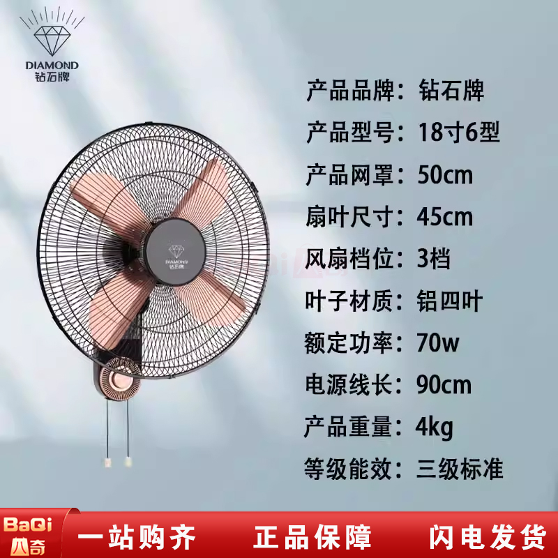 钻石牌FB1-45-6 18寸6型壁扇家用静音壁挂式大风力工业摇头挂壁电风扇