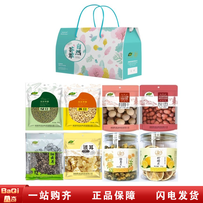 商品名称:升美滋自然荟萃1690克礼盒尺寸43*19*30cm(460克绿豆、460克黄豆、200克桂圆干、200克灰枣、150克细云耳、120克银耳、50克胎菊王、50克柠檬片)